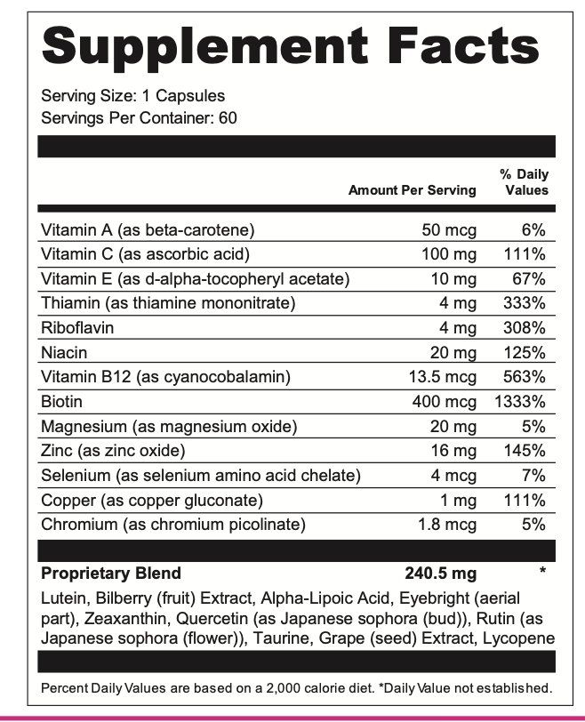 Vision Support combines essential vitamins, plant extracts, and amino acids designed to promote natural vision health. This carefully formulated blend supports eye function and helps maintain clarity, contributing to overall visual well-being.*